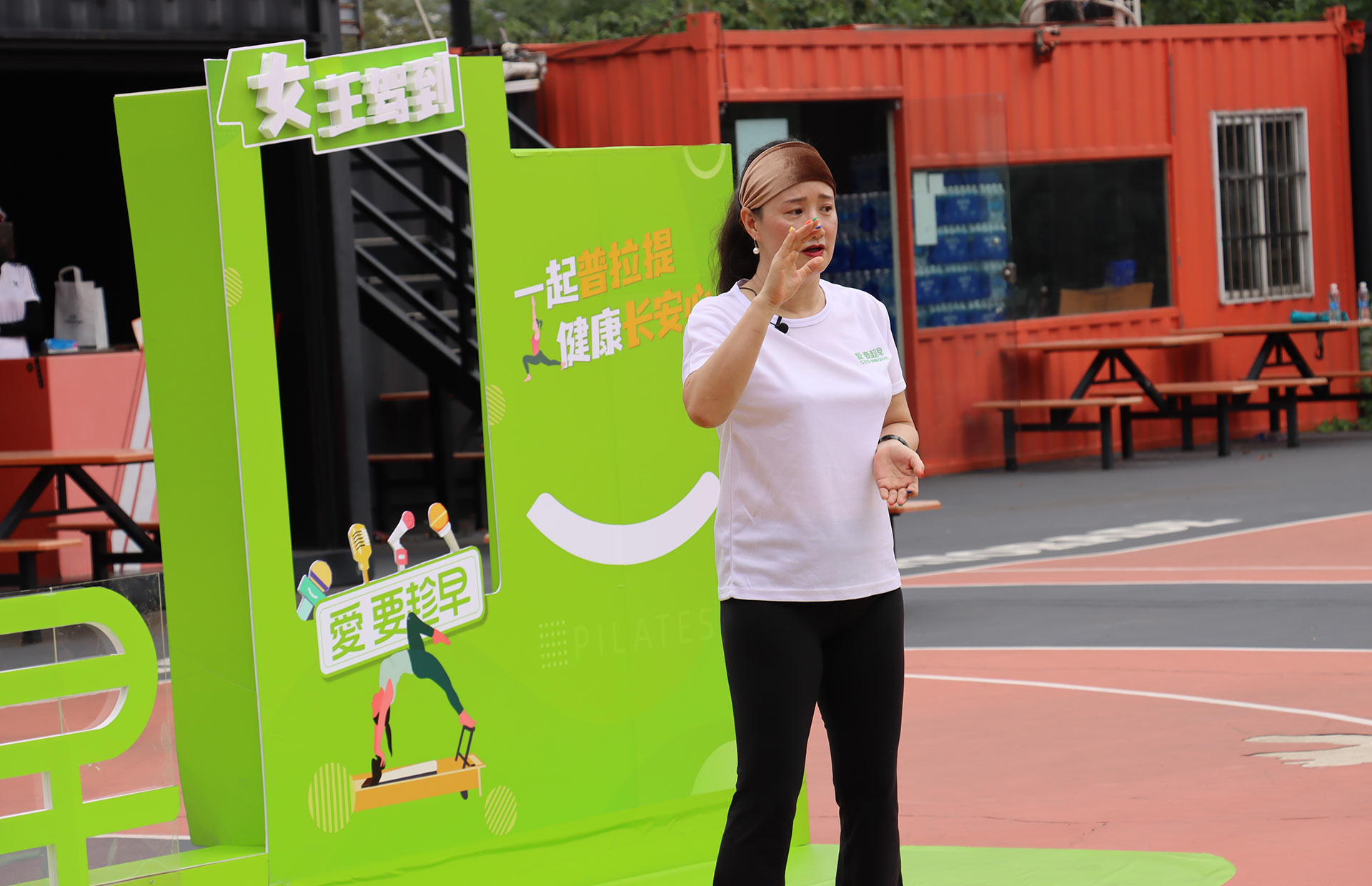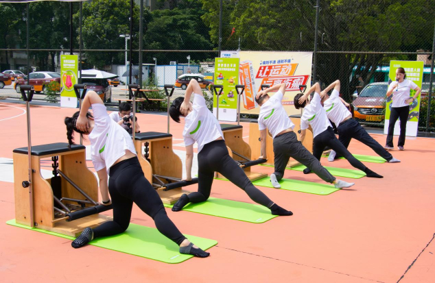 在現(xiàn)場,馬老師詳細(xì)演示、講解了“腸道普拉提”動(dòng)作,并帶領(lǐng)30多位普拉提愛好者一起展示。