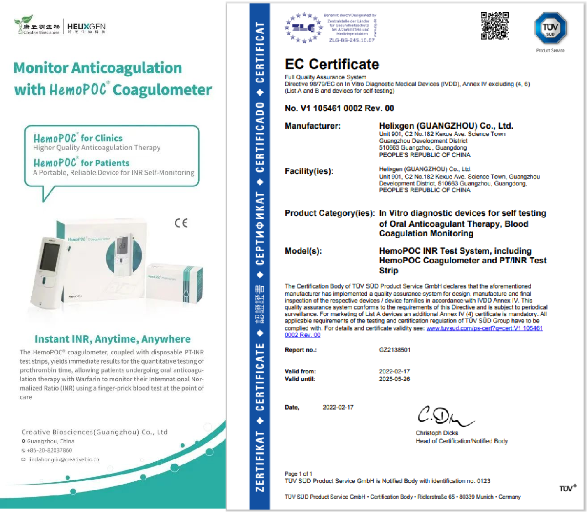 HemoPOC®凝血檢測儀是一款便攜式凝血檢測設(shè)備,與配套的檢測卡組成。HemoPOC®凝血檢測系統(tǒng),用于定量測定新鮮指尖毛細(xì)血管血的凝血酶原時間。該系統(tǒng)操作簡單,滿足即時檢測及床旁檢測的應(yīng)用需求,增強(qiáng)抗凝管理和慢病管理的有效性。