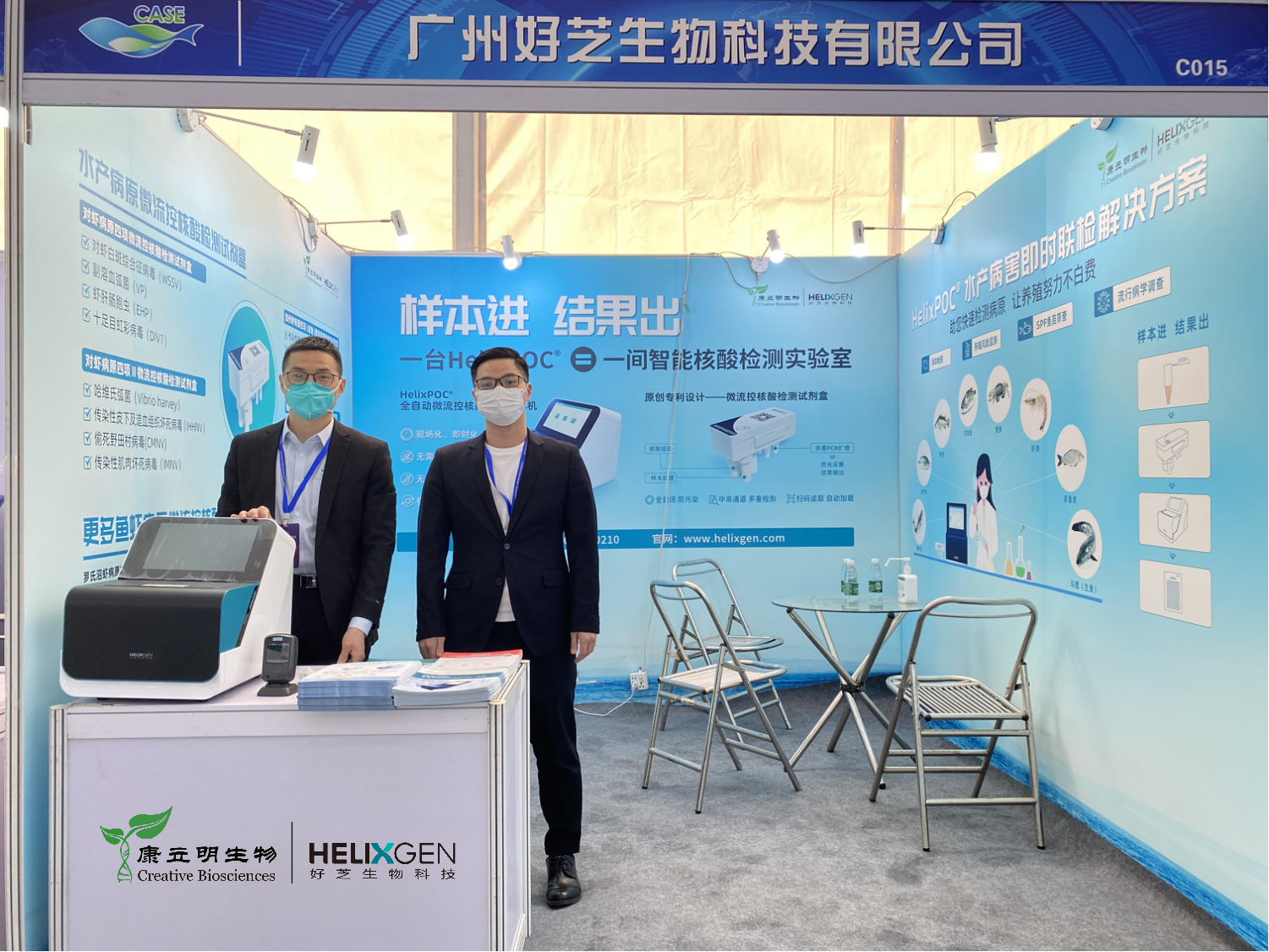 本次展會,康立明生物全資子公司好芝生物攜帶HelixPOC®全自動微流控熒光PCR一體機及HelixPOC®水產病原微流控核酸檢測試劑盒赴展。