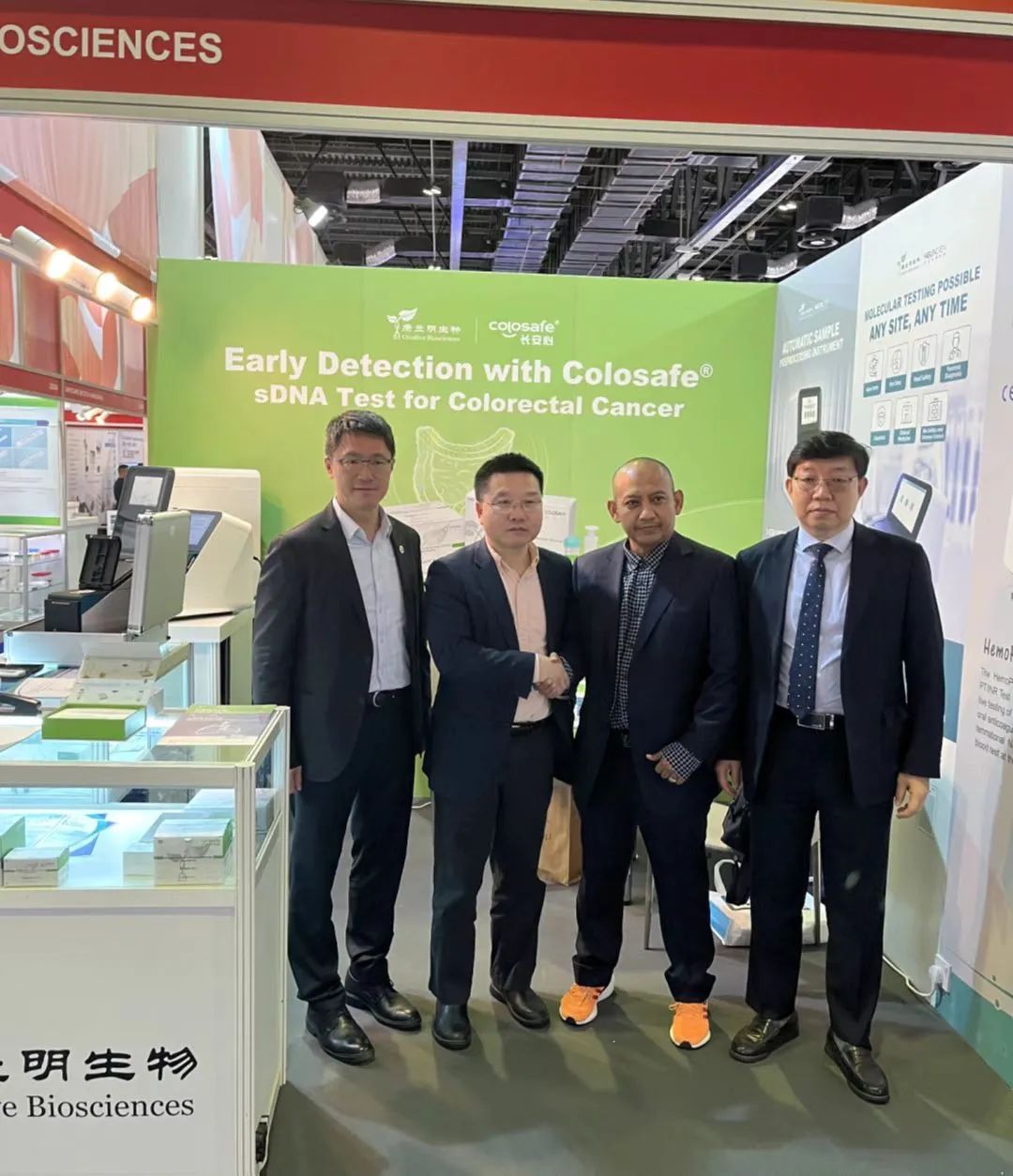 展會(huì)上,康立明生物創(chuàng)始人、腸癌早篩技術(shù)發(fā)明人鄒鴻志博士親臨現(xiàn)場(chǎng),并帶領(lǐng)專業(yè)團(tuán)隊(duì)為多方客戶熱情專業(yè)的講解,共同交流,洽談合作。并介紹了長安心®目前在國內(nèi)568051例應(yīng)用檢測(cè)(截至2022年12月31日)的成功模式與經(jīng)驗(yàn)。