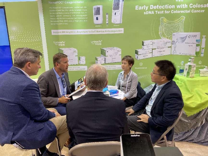 其中,長安心®糞便基因腸癌檢測、久安心®膀胱癌基因檢測和會安心®肺癌基因檢測等產(chǎn)品,以其精準(zhǔn)、便捷、無創(chuàng)等優(yōu)勢,成為與會專業(yè)人士關(guān)注的焦點。同時也展示了康立明全資子公司好芝生物產(chǎn)品HelixPOC®全自動微流控?zé)晒釶CR一體機、HemoPOC®凝血檢測系統(tǒng),綜合展示了公司的創(chuàng)新領(lǐng)先技術(shù)。這些對于腫瘤的早期篩查、個性化治療以及疾病管理具有重要意義。